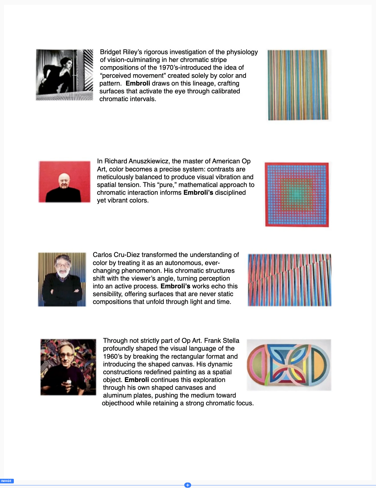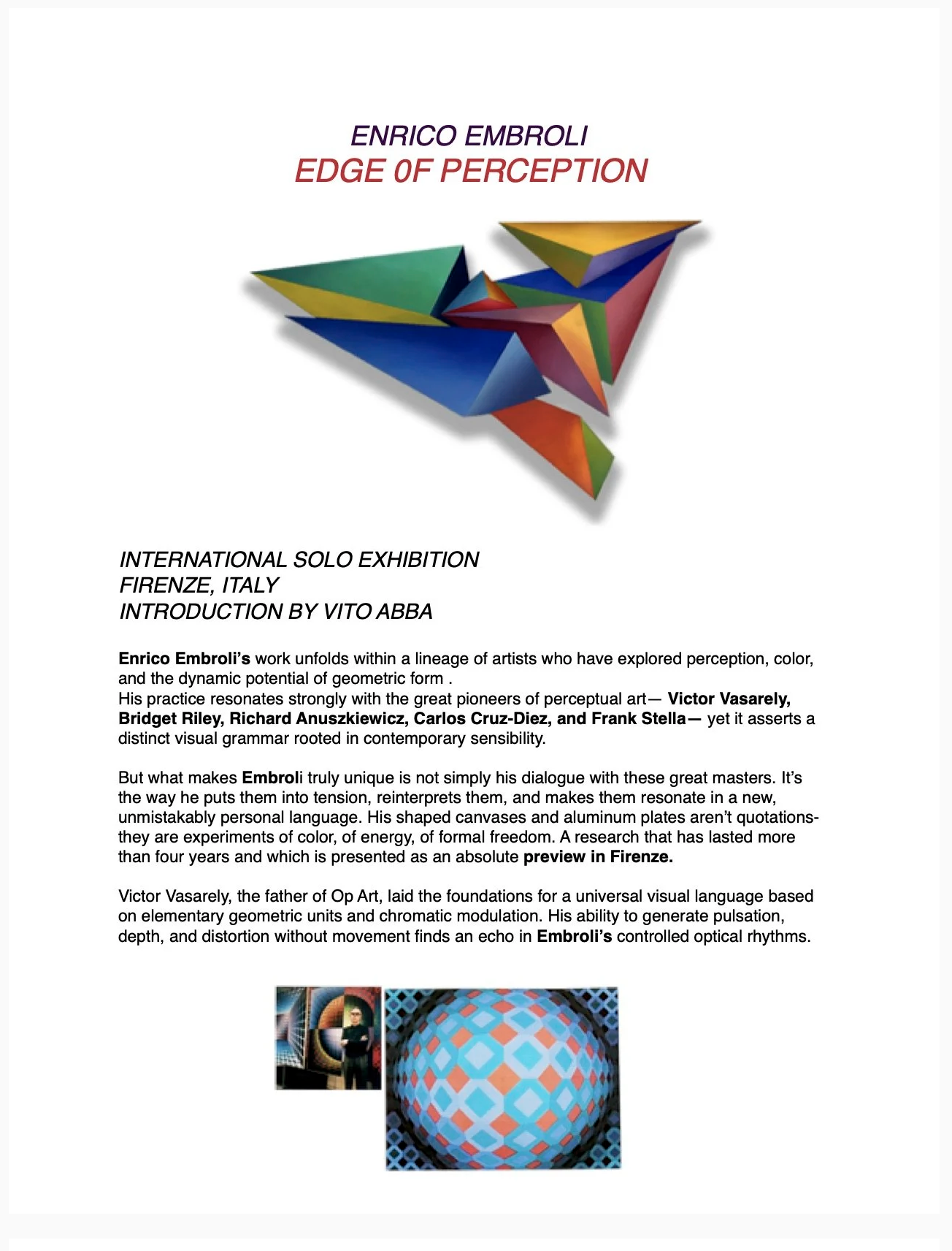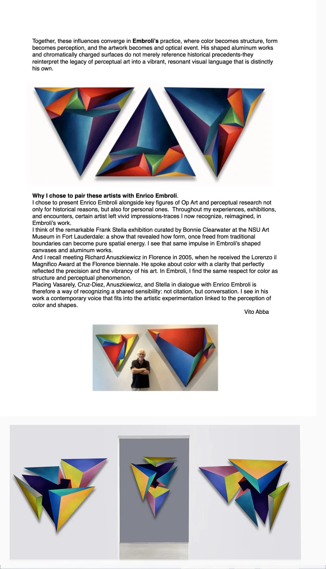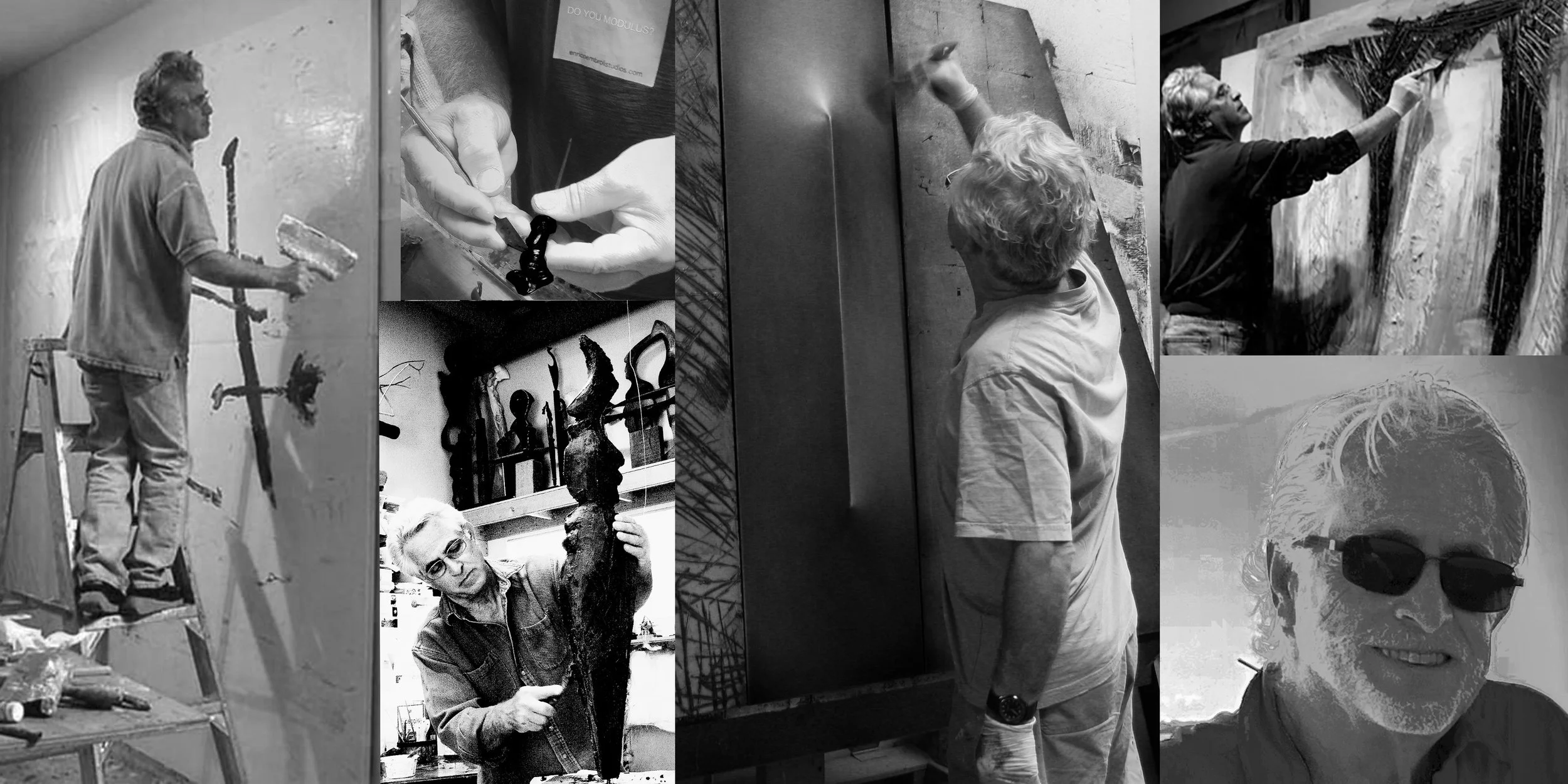 Known for his inventive textural surfaces, Enrico Embroli threads overlapping themes as one series informs another. Enrico’s passion for both painting and sculpture creates a fusion of both disciplines into an exciting and innovative creative force.