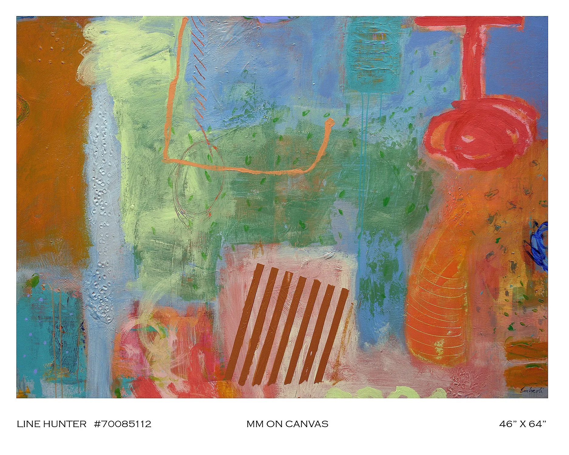 In this series I explore the explosive creative energy during the painting process. Painting with intuition and vitality has unleashed a new expression of visual content. Combining multiple layers of color, rich textural surfaces, vigorous line work and migrating brush strokes dancing across the surface, create new visual rhythms. These works are more animated and colorful than previous series, reflecting the moment of creation.